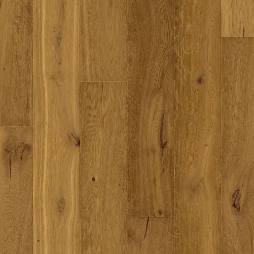 A beautiful handcrafted oak floor with lots of natural beauty. Further enhanced with bevelled edges on all sides and a deeply brushed surface with a golden brown finish. Suitable for use over underfloor heating.