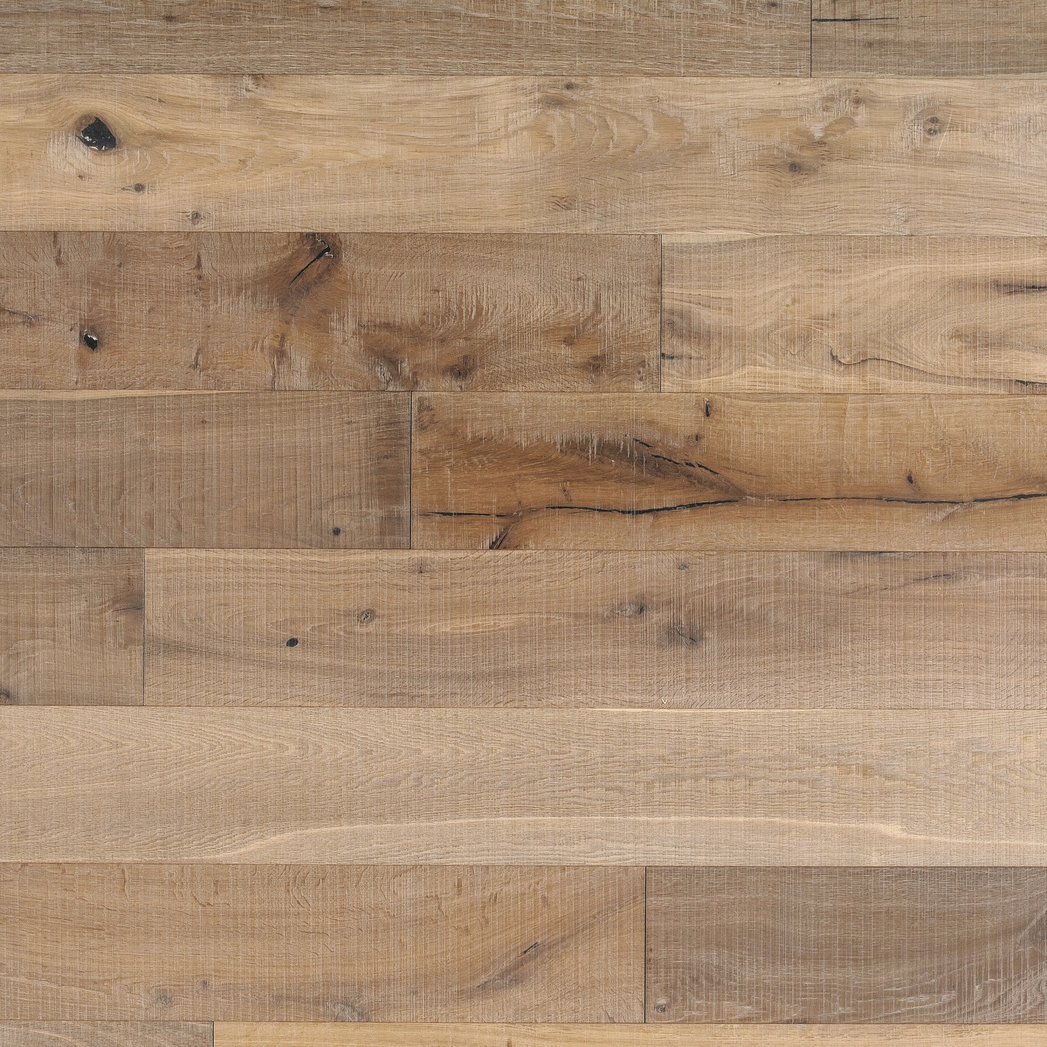A beautiful handcrafted oak floor with saw marks and lots of natural beauty. Further enhanced with bevelled edges on all sides, a deeply brushed surface with a lightly smoked and oiled finish defines the texture of the wood. Suitable for use over underfloor heating.
