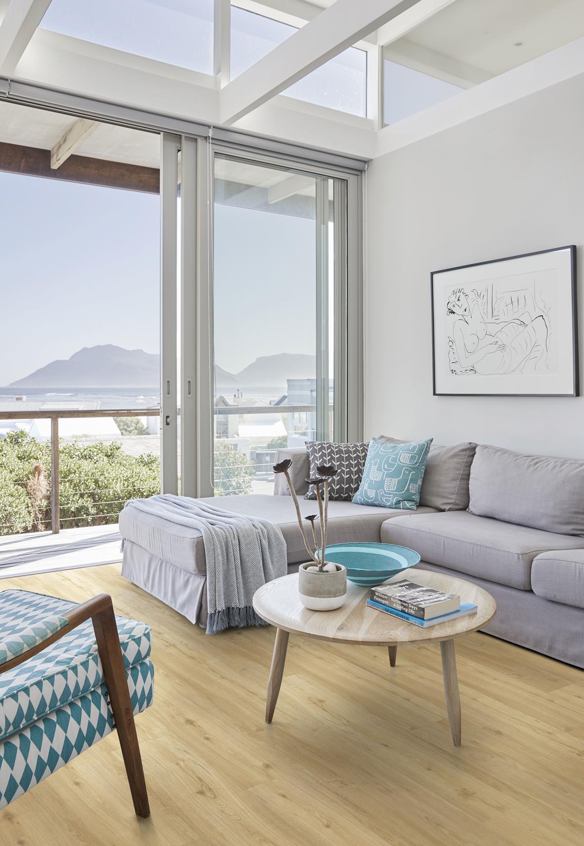 With warm natural oak tones and a wood-grain texture, including some knots, this vinyl tile looks just like natural oak but with the benefit of being durable and easy to maintain. All the Kahrs Craft range floors have an integrated IXPE underlay, making them easy to install—100% waterproof and durable hygienic flooring.