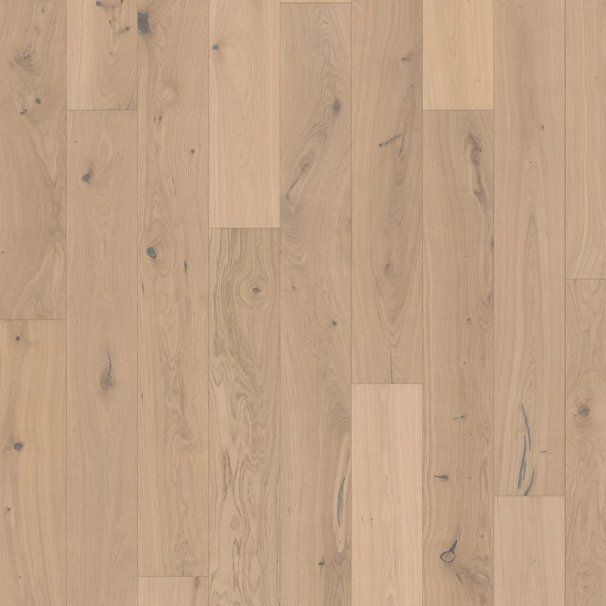 Oak Larus captures the clarity of pale oak with its airy, white-oiled finish. Its softly washed tones feel effortless and clean, allowing the natural character of the wood to take center stage. Knots and natural variations are carefully hand-restored with wooden plugs and filler, creating a harmonious and subtle expression. The surface is then finished with a white-tinted natural oil that preserves the intricate detail of the oak.