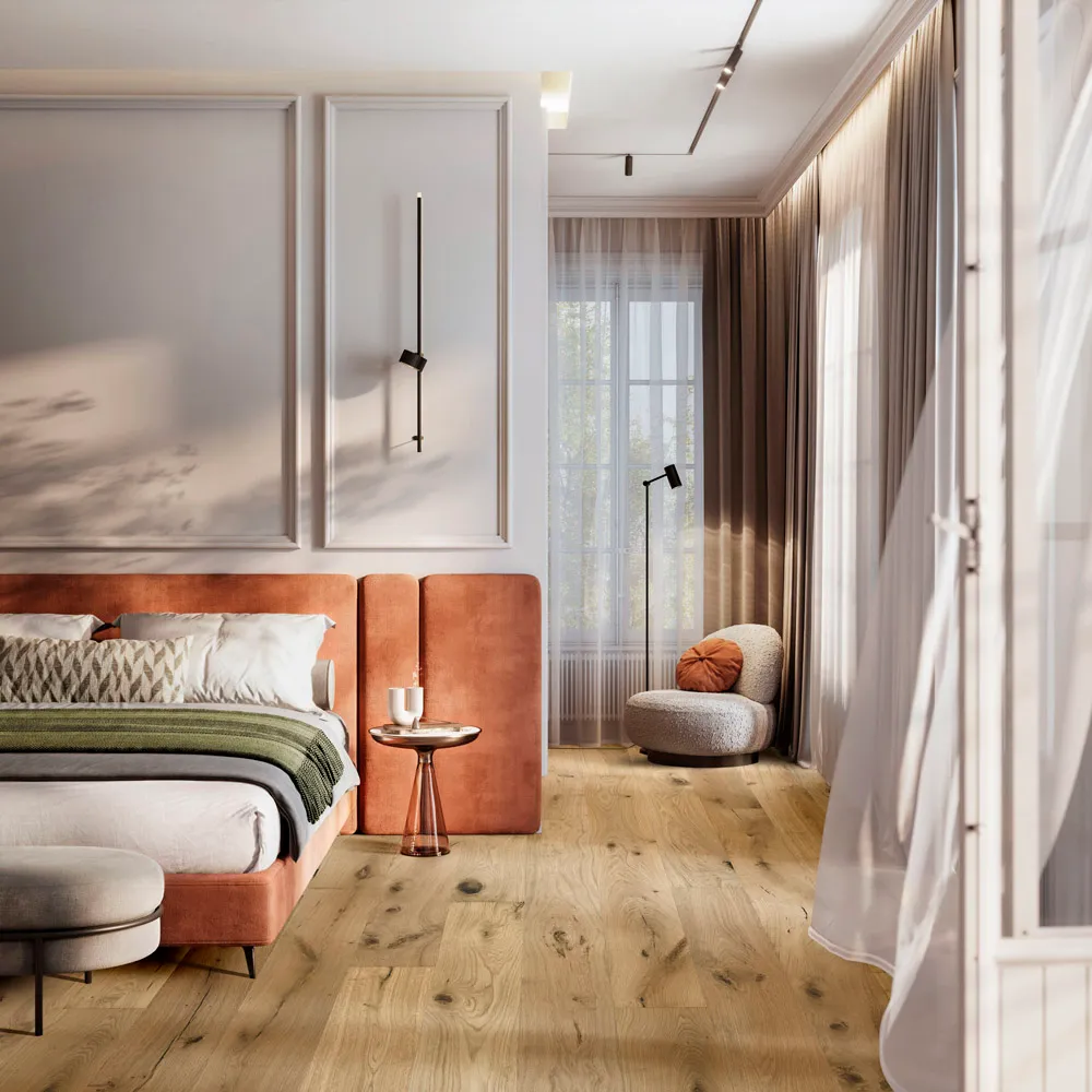 The ultra-matt lacquer finish enriches the wood’s natural tones while providing a soft, low-sheen surface that feels warm and comfortable underfoot. This protective finish ensures your oak engineered wood flooring remains beautiful and durable, even in busy households.