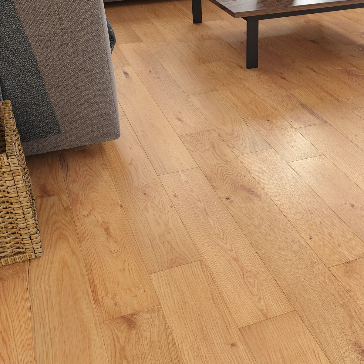 Perfect for both modern and traditional spaces, Oxburgh Natural wood flooring is easy to maintain and ideal for high-traffic areas. Its multi-length design allows for a more natural installation pattern, making it a stylish and practical choice for homeowners seeking long-lasting quality and understated elegance.