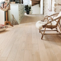 Sober and timeless, this wood floor is a sure investment. Its wide planks bring a beautiful modern look, while its Saphir colour adds a trendy bleached and matt effect. When touched, it emanates an unparalleled softness that is perfect for any room. As for its design, it combines shades of grey, awakened by touches of yellow.